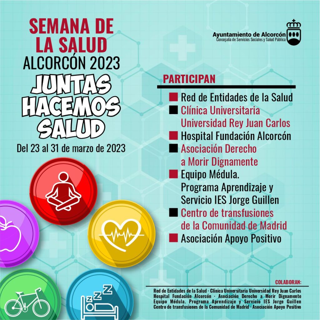 Esta mañana hemos estado, junto a otras asociaciones del municipio, en el acto de inauguración de la Semana de la Salud 2023 de Alcorcón. Este año tiene por lema «Juntas hacemos salud» y las actividades se desarrollarán entre el 23 y 31 de marzo. El evento de inauguración ha comenzado a las 10h en el polideportivo Los Cantos, lugar donde las entidades de la ciudad han contado con mesas donde explicar el trabajo que realizan.