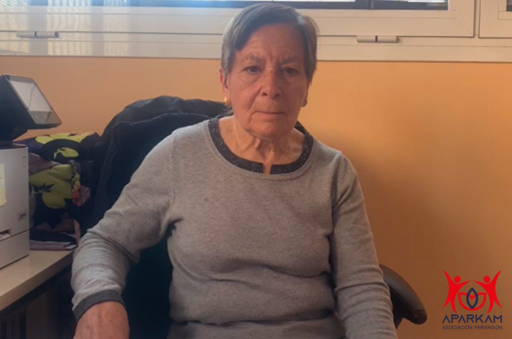 Tras salir de su clase de Fisioterapia, Avelina Fernández (77 años) camina tranquila mientras se despide de sus compañeros. Esta socia, nacida en un pueblo de Burgos, lleva desde 2019 en Aparkam. En ese mismo año, fue cuando le detectaron la enfermedad de Párkinson. “La mano derecha y la pierna derecha no me iban bien, notaba que algo me pasaba”, explica Avelina sobre cómo cuáles son los síntomas que le acercaron al diagnóstico. Lo que en un principio empezó como un diagnóstico que la preocupaba, finalmente la ayudó en cuestiones en las que nunca antes había reparado: “Yo antes era muy para mí, no era muy decidida a hablar con las personas, pero en la asociación me he abierto bastante”.