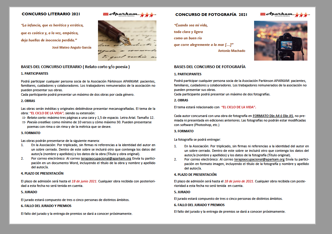 Podrá participar cualquier persona socia de la Asociación Párkinson Aparkam: pacientes, familiares, cuidadores y colaboradores.