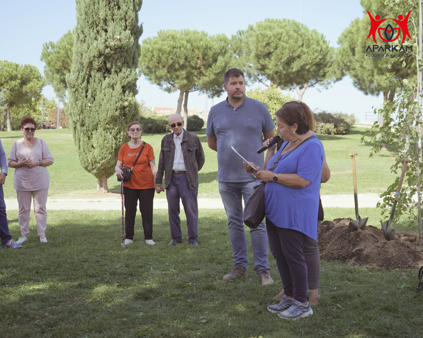 Tras ello, María José de Diego Sánchez, presidenta de Aparkam, presentó el objetivo de «Un árbol por el Párkinson», agradeciendo la presencia de todos los asistentes y concienciando sobre la necesidad de tener espacios y oportunidades como ésta, y de contar con el apoyo de todos los presentes, para que la Asociación siga desarrollando su labor en beneficio de las personas que padecen la enfermedad y sus familiares.