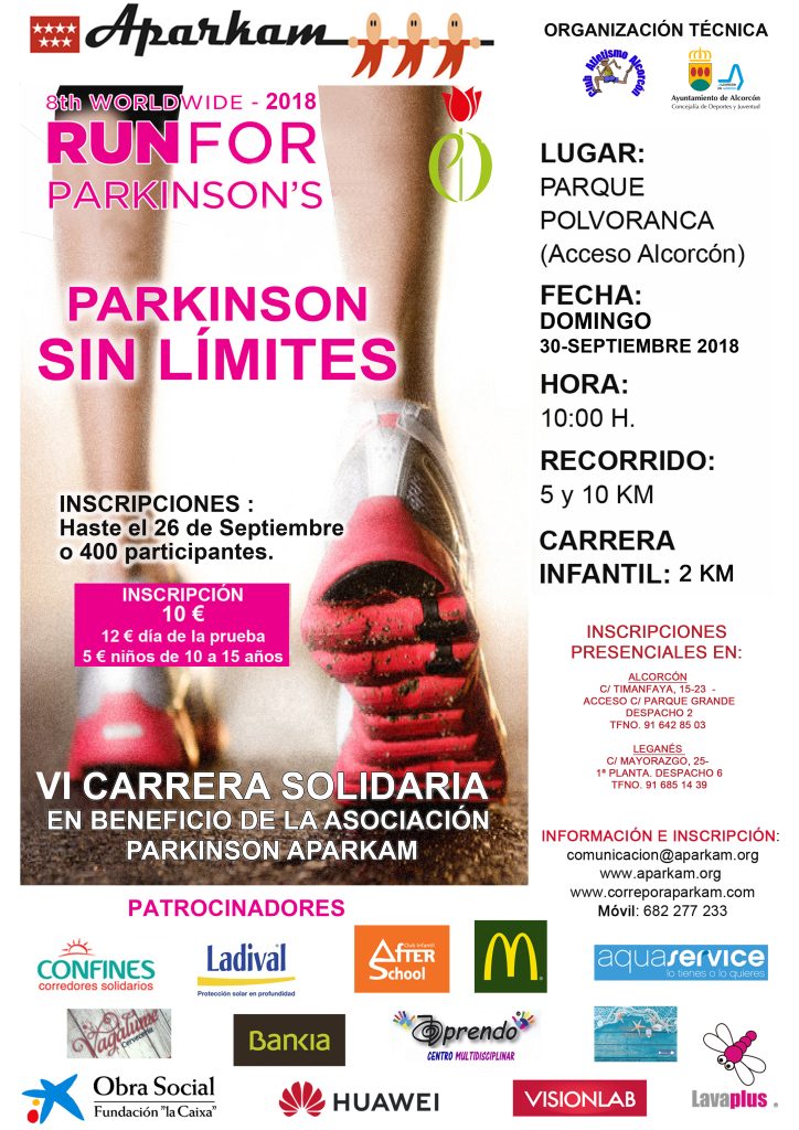 Esta VI edición de la carrera Párkinson Sin Límites se celebra bajo el lema “Si tú corres, nosotros avanzamos” para recordar a los participantes la importancia y generosidad de su intervención en la carrera: todo lo que se recauda se dedica de forma íntegra a los diferentes servicios que ofrece la Asociación Párkinson Aparkam a personas con esta dolencia. Será el próximo 30 de septiembre, desde las 9:30 horas, en el Parque Polvoranca de Leganés. Esta iniciativa se ha convertido en una vía de financiación fundamental para el colectivo.
